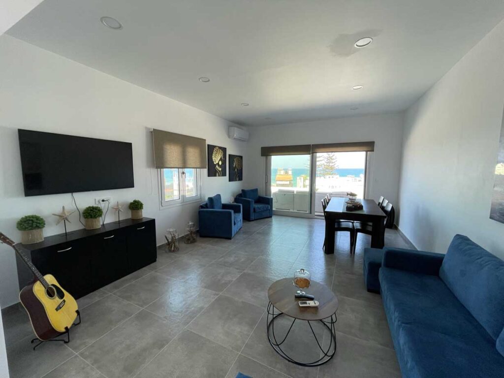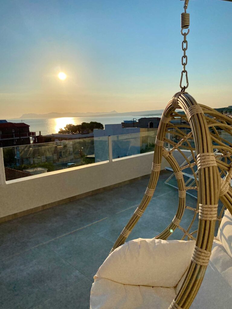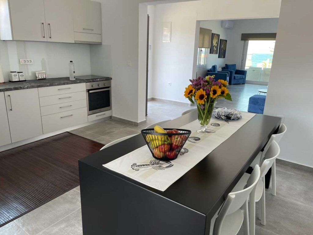 Mira is a top floor residence located at the heart of Kato Stalos, just 60m away from the sandy beach, that features spacious premises, minimalistic design, contemporary facilities and an amazing panoramic view to the sea and the surroundings. It was fully renovated in 2021 and has 120 m2 of inner space, as well as 120 m2 of balconies, 3 bedrooms with king size beds, a fully equipped kitchen and a spacious living room with a Samsung 55 smart TV and two large balconies, one with a panoramic view to the sea and one with mountain view. The residence is named after Mira (Star Omicron Ceti), a bright star along the celestial equator, is an ideal choice for those who want to be close to the sandy beaches of Chania West coastline, yet still very close to the amazing city of Chania and the famous old venetian harbor.